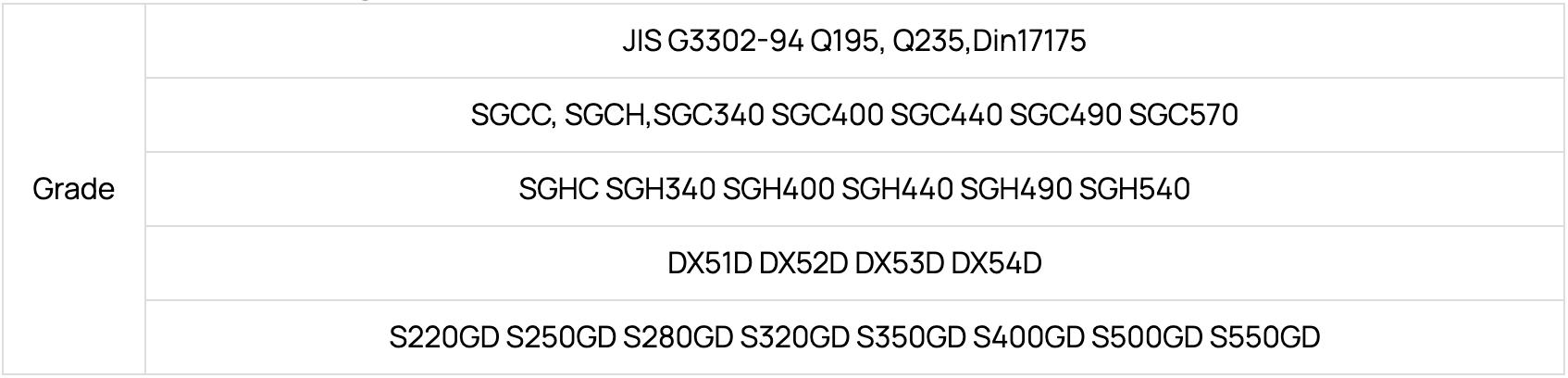 Galvanized steel sheet grade